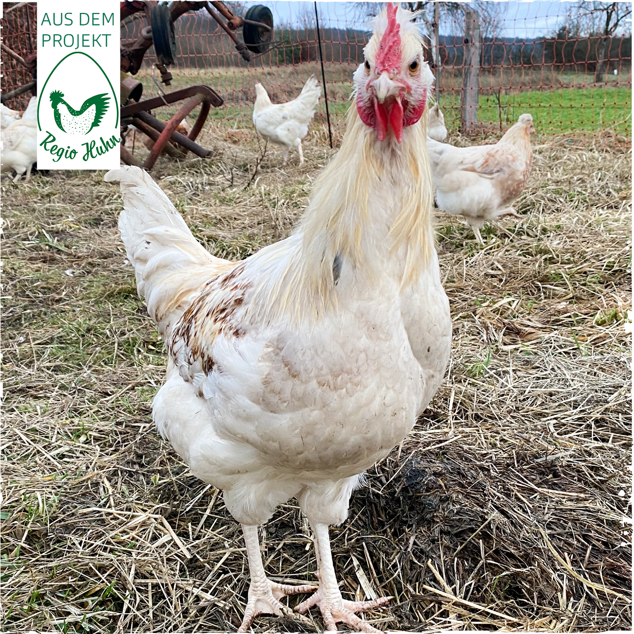 Das vom Bundesprogramm Ökologischer Landbau (BÖL) geförderte Projekt „RegioHuhn“ verfolgt das Ziel, regionale Rassen mit modernen Wirtschaftshühnern zu kreuzen. So sollen die Robustheit und regionale Anpassung alter Rassen mit der Leistungsfähigkeit moderner Zuchtlinien kombiniert werden. Mehr zum RegioHuhn Projekt erfährst du hier.